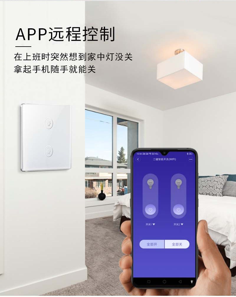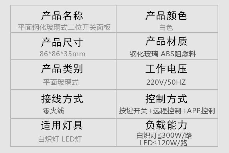 智能觸控平面鋼化玻璃式二位開關面板_百仕誠
