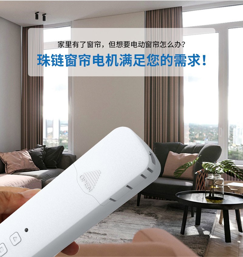 此產品適用于拉珠卷簾、拉珠柔紗簾、拉珠百葉簾、改變傳統窗簾手動拉升的情況,不換窗簾讓窗簾變得更智能便捷,可通過語音、涂鴉APP、遙控控制,讓您悅享智能生活!